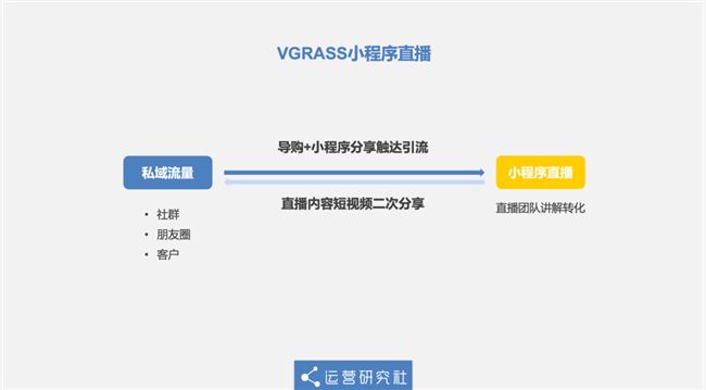 服飾品牌 VGRASS 則在今年 2 月開始嘗試小程序直播,通過導(dǎo)購和小程序分享觸達(dá)用戶;同時(shí)導(dǎo)購還會(huì)在社群里,把直播間內(nèi)容剪成短視頻,二次觸達(dá)社群和朋友圈里的用戶。半年來,VGRASS 小程序銷售破 9000 萬,其中直播業(yè)績(jī)占比 36%。