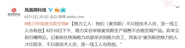 6 月 13 日消息,“格力舉報(bào)奧克斯空調(diào)”事件持續(xù)發(fā)酵,引發(fā)業(yè)界廣泛關(guān)注。